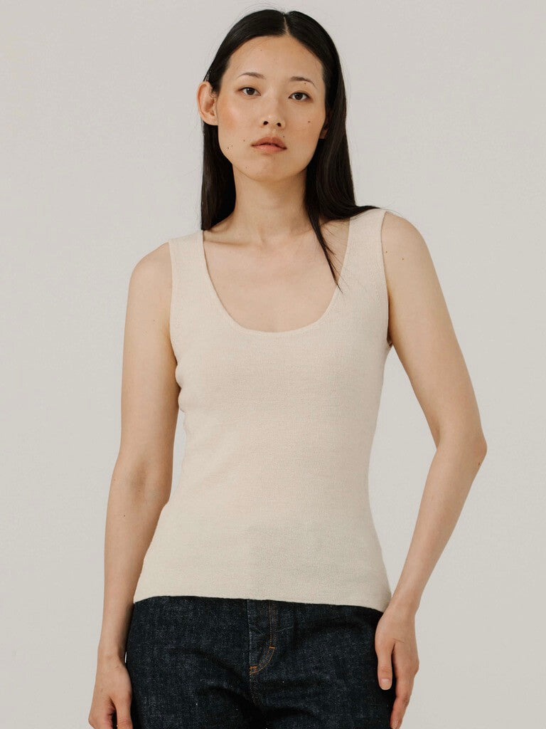 Slim Knit Tank in Pearl
