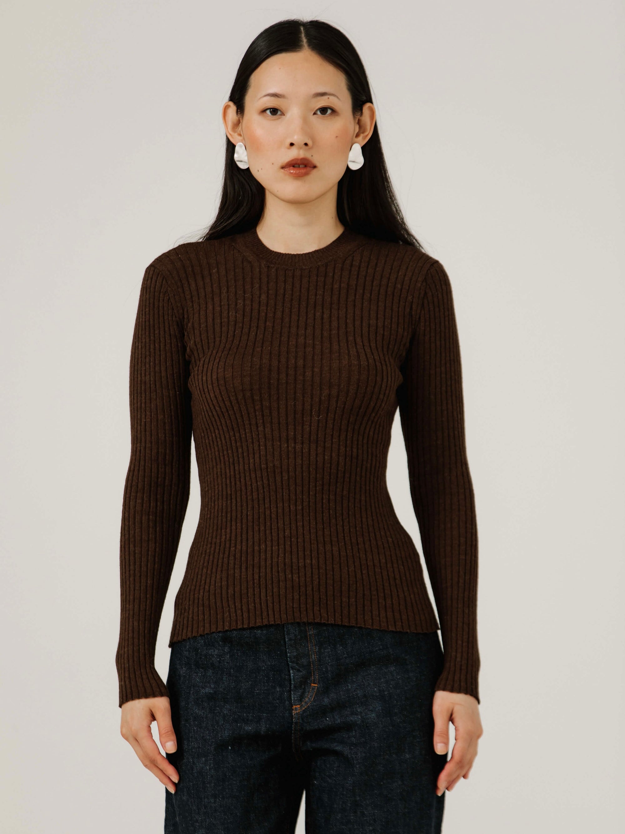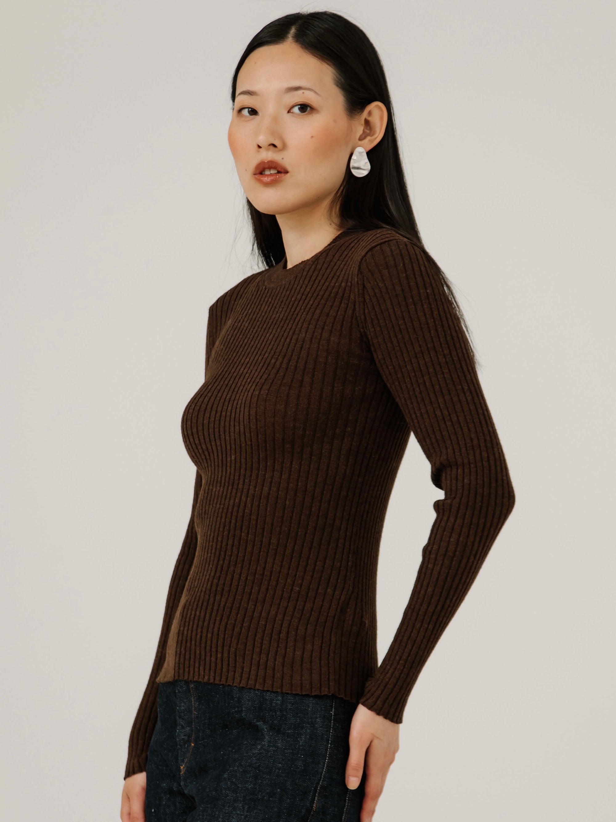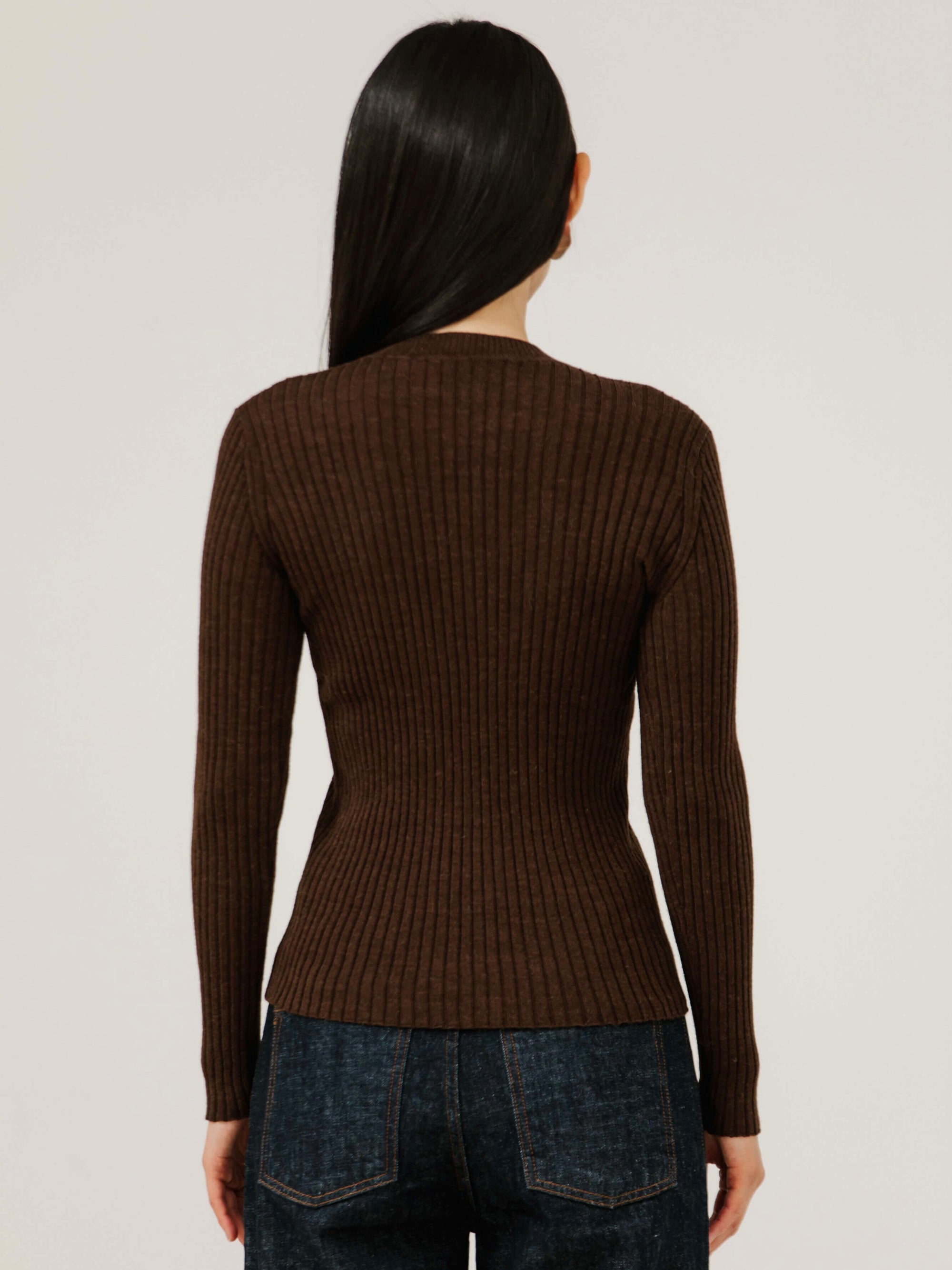 Fine Knit Rib Top in Carob