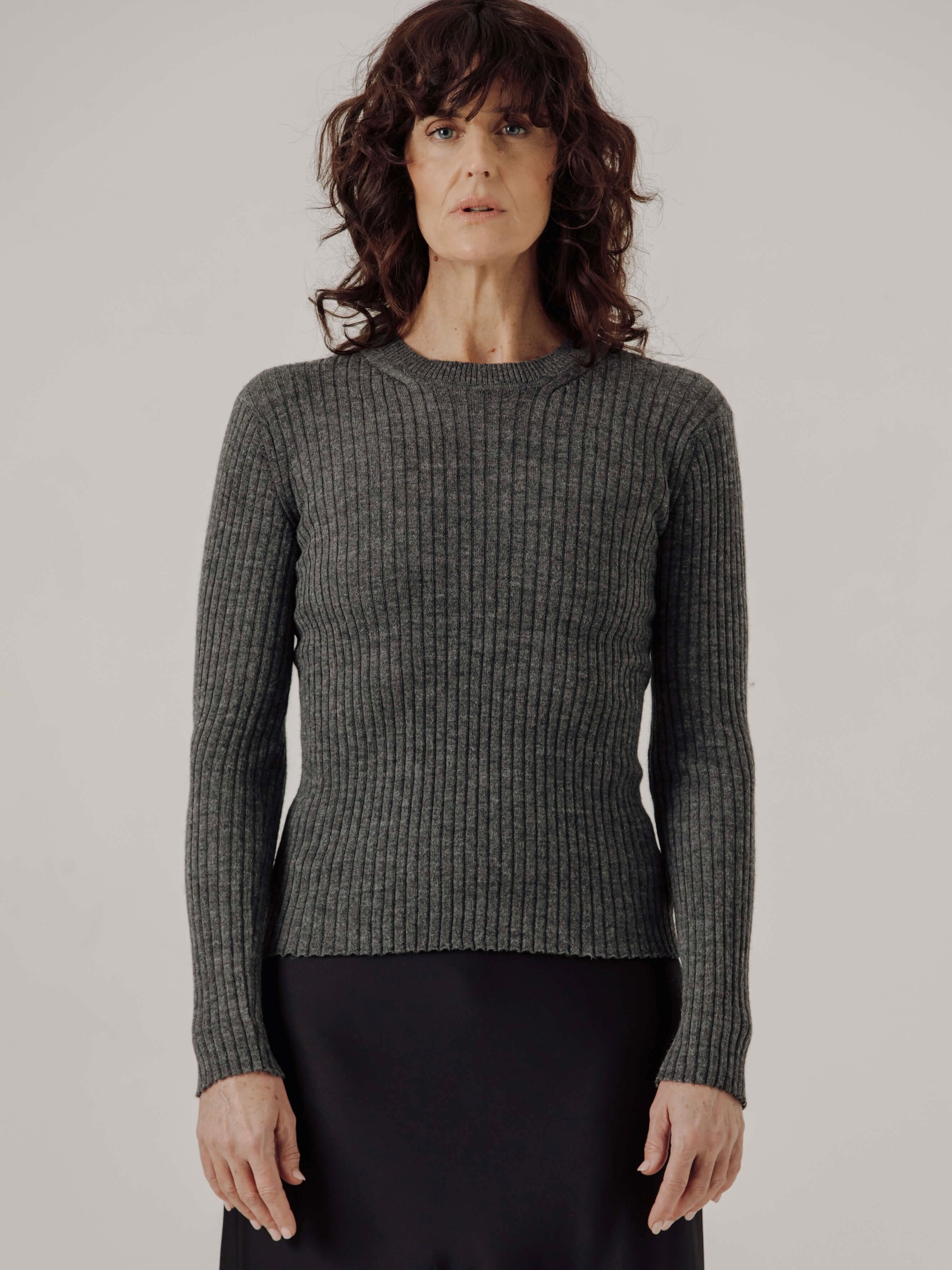 Fine Knit Rib Top in Stone