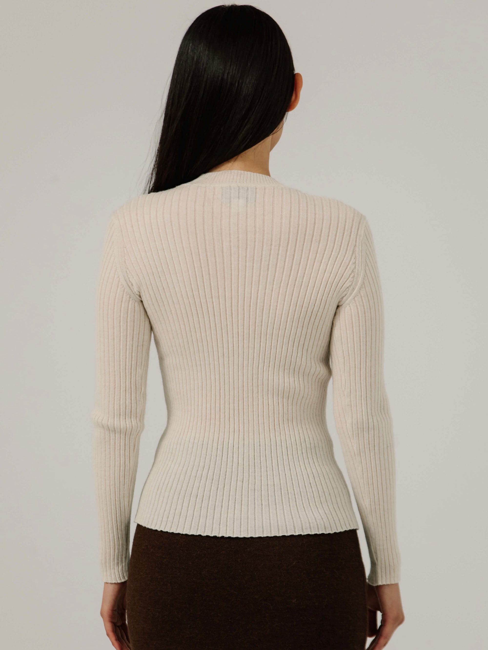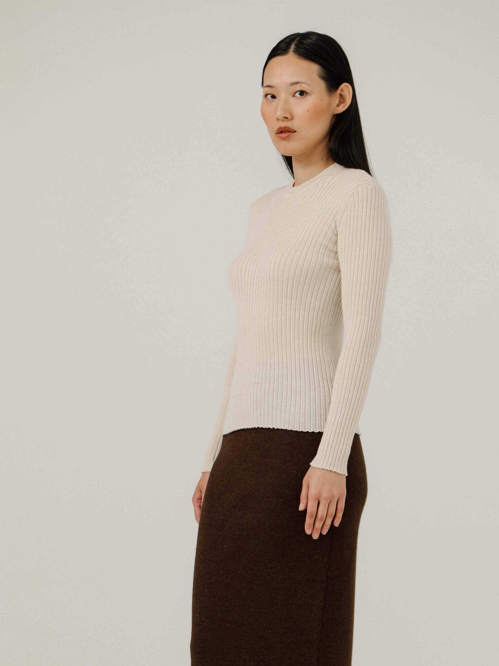 Fine Knit Rib Top in Pearl